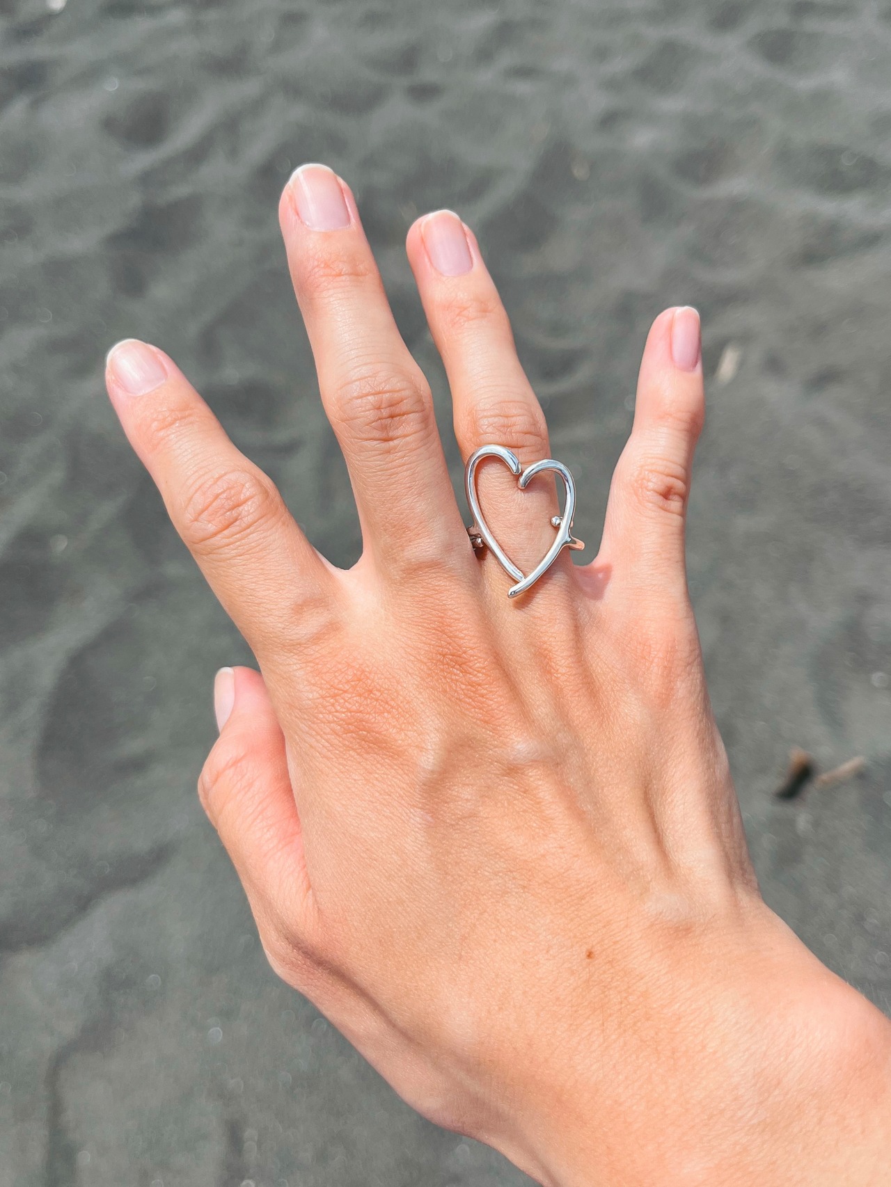 別売りの「Right」リングと一緒に着けるとハートになるユニークなデザインです。